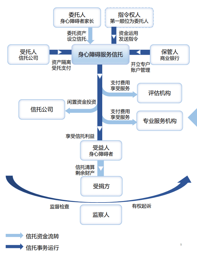 在身心障碍服务信托的架构中,共有八个关键角色。