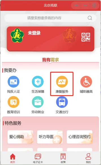 通过“北京市残疾儿童康复服务系统”(“北京残联”小程序)提交康复需求,提出康复申请。