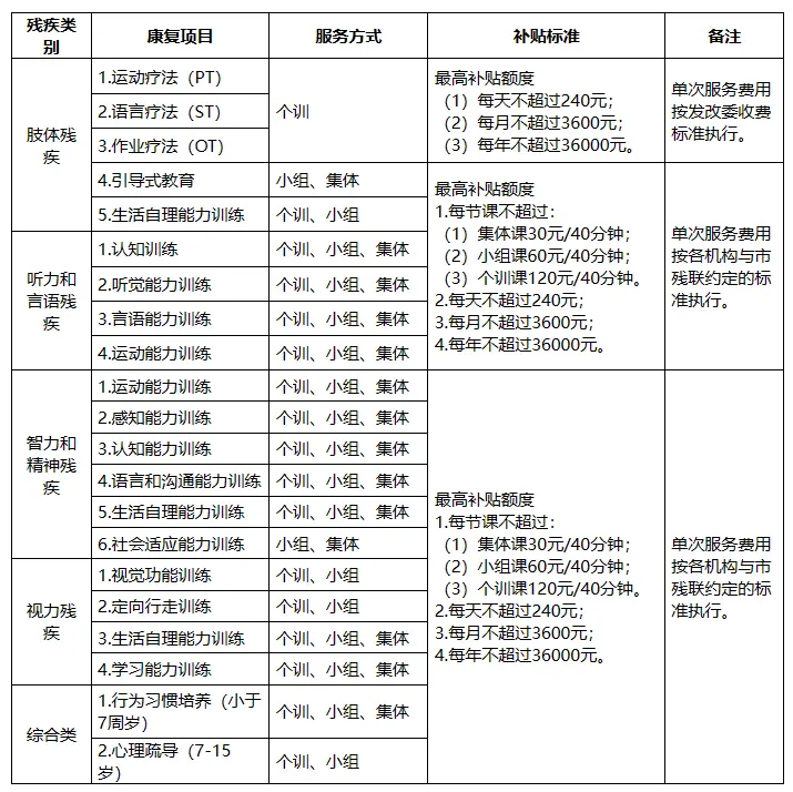 宁波市:在省级定点康复机构训练的,每人每月最高补贴3000元,每年最高补贴36000元;