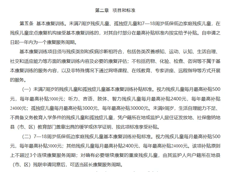 每年可领取2.4万元的康复训练补贴,每年康复训练不少于10个月。