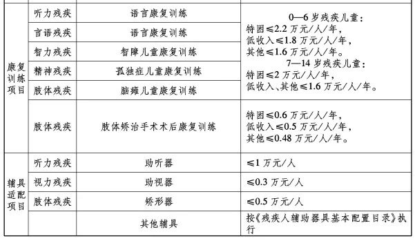 为0~6岁听力、言语、肢体、智力残疾儿童和自闭症儿童提供机构内基本康复训练,每人每年2万元。