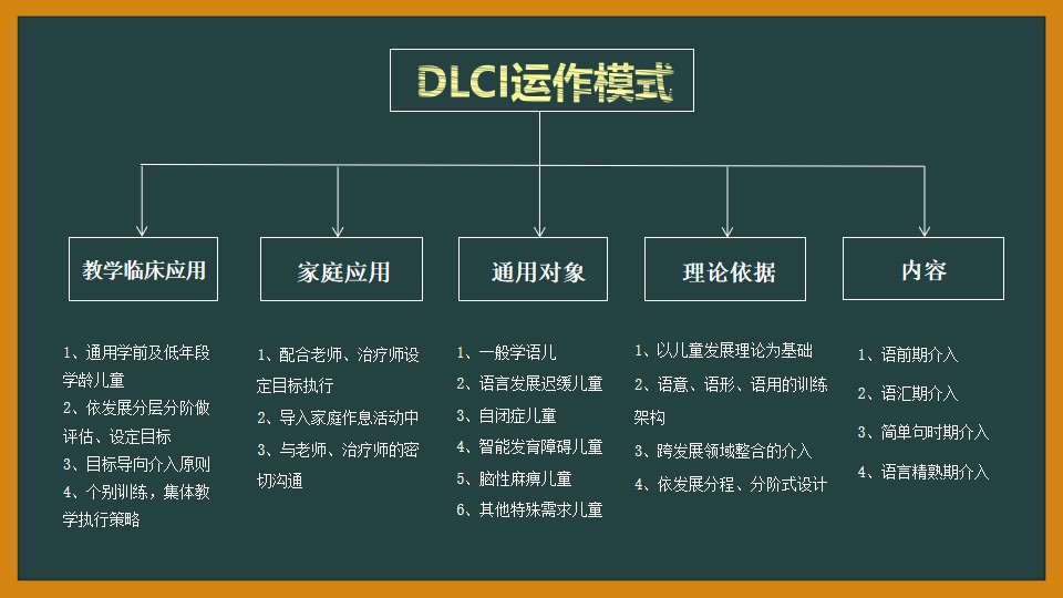 DLCI(Developmental Language Communication Intervention),即发展性语言交际干预训练,是由台湾知名语言治疗及早疗专家林丽英老师提出的语言干预理念,通过为语言发育迟缓儿童提供分阶式语言训练课程,教导家长有效提升孩子的语言与沟通能力。